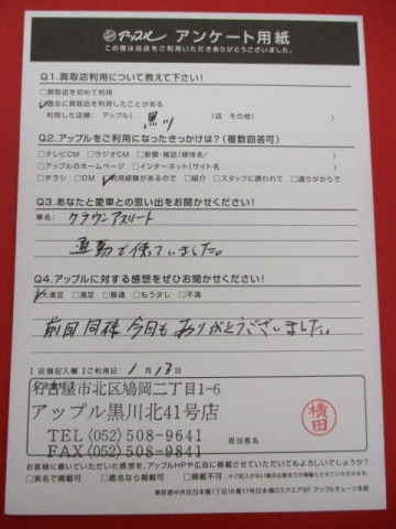 お車のご相談・ 査定だけでもOK! カンタン 入力 30秒 アップルがブランド買取始めました! お電話でも受付中! 受付時間10:00~19:00 ※毎週水曜定休日 052-508-9641 お車のご相談・ 査定だけでもOK! カンタン 入力 30秒 アップルがブランド買取始めました! お電話でも受付中! 受付時間10:00~19:00 ※毎週水曜定休日 052-508-9641 アップルがブランド買取始めました! お電話でも受付中! 受付時間10:00~19:00 ※毎週水曜定休日 052-508-9641 店舗情報 在庫車 スタッフ紹介 ブログ お客様の声 キャンペーン お得 無料査定 click お客様の声 ご記入日: 2017/01/13 N.K様 前回同様今回もありがとうございました。 前へ 次へ お客様の声一覧を見る