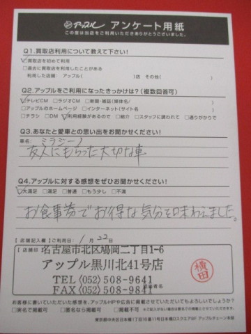 お車のご相談・ 査定だけでもOK! カンタン 入力 30秒 アップルがブランド買取始めました! お電話でも受付中! 受付時間10:00~19:00 ※毎週水曜定休日 052-508-9641 お車のご相談・ 査定だけでもOK! カンタン 入力 30秒 アップルがブランド買取始めました! お電話でも受付中! 受付時間10:00~19:00 ※毎週水曜定休日 052-508-9641 アップルがブランド買取始めました! お電話でも受付中! 受付時間10:00~19:00 ※毎週水曜定休日 052-508-9641 店舗情報 在庫車 スタッフ紹介 ブログ お客様の声 キャンペーン お得 無料査定 click お客様の声 ご記入日: 2017/01/22 A.T様 お食事券でお得な気分を味わえました。 前へ 次へ お客様の声一覧を見る