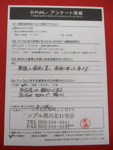 お車のご相談・ 査定だけでもOK! カンタン 入力 30秒 アップルがブランド買取始めました! お電話でも受付中! 受付時間10:00~19:00 ※毎週水曜定休日 052-508-9641 お車のご相談・ 査定だけでもOK! カンタン 入力 30秒 アップルがブランド買取始めました! お電話でも受付中! 受付時間10:00~19:00 ※毎週水曜定休日 052-508-9641 アップルがブランド買取始めました! お電話でも受付中! 受付時間10:00~19:00 ※毎週水曜定休日 052-508-9641 店舗情報 在庫車 スタッフ紹介 ブログ お客様の声 キャンペーン お得 無料査定 click お客様の声 ご記入日: 2017/02/26 T.M様 対応者が親切である。店内がきれいで落ちつく。 前へ 次へ お客様の声一覧を見る