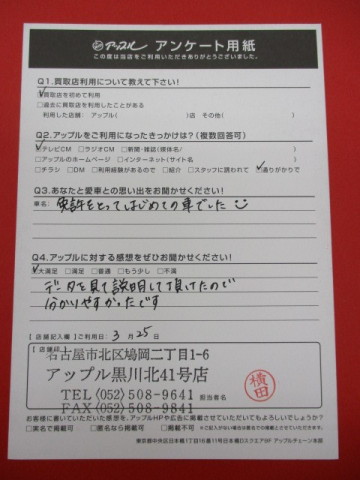 お車のご相談・ 査定だけでもOK! カンタン 入力 30秒 アップルがブランド買取始めました! お電話でも受付中! 受付時間10:00~19:00 ※毎週水曜定休日 052-508-9641 お車のご相談・ 査定だけでもOK! カンタン 入力 30秒 アップルがブランド買取始めました! お電話でも受付中! 受付時間10:00~19:00 ※毎週水曜定休日 052-508-9641 アップルがブランド買取始めました! お電話でも受付中! 受付時間10:00~19:00 ※毎週水曜定休日 052-508-9641 店舗情報 在庫車 スタッフ紹介 ブログ お客様の声 キャンペーン お得 無料査定 click お客様の声 ご記入日: 2017/03/25 K.N様 データを見て説明して頂けたので分かりやすかったです。 前へ 次へ お客様の声一覧を見る