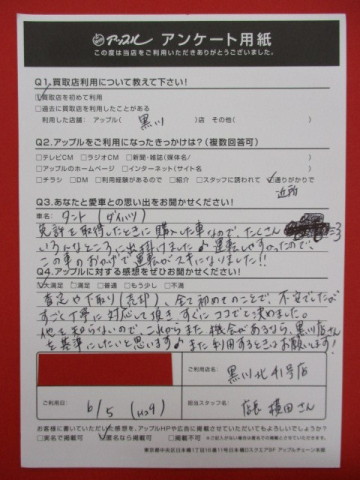 査定や下取り(売却)、全て初めてのことで、不安でしたが