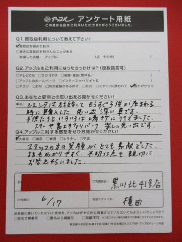 お車のご相談・ 査定だけでもOK! カンタン 入力 30秒 アップルがブランド買取始めました! お電話でも受付中! 受付時間10:00~19:00 ※毎週水曜定休日 052-508-9641 お車のご相談・ 査定だけでもOK! カンタン 入力 30秒 アップルがブランド買取始めました! お電話でも受付中! 受付時間10:00~19:00 ※毎週水曜定休日 052-508-9641 アップルがブランド買取始めました! お電話でも受付中! 受付時間10:00~19:00 ※毎週水曜定休日 052-508-9641 店舗情報 在庫車 スタッフ紹介 ブログ お客様の声 キャンペーン お得 無料査定 click お客様の声 ご記入日: 2017/06/17 T様 スタッフの方の笑顔がとても素敵でした。話もわかりやすく、不明な点も親切にお答えをもらいました。 前へ 次へ お客様の声一覧を見る