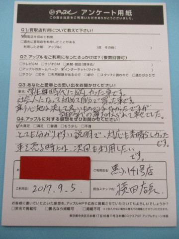 お車のご相談・ 査定だけでもOK! カンタン 入力 30秒 アップルがブランド買取始めました! お電話でも受付中! 受付時間10:00~19:00 ※毎週水曜定休日 052-508-9641 お車のご相談・ 査定だけでもOK! カンタン 入力 30秒 アップルがブランド買取始めました! お電話でも受付中! 受付時間10:00~19:00 ※毎週水曜定休日 052-508-9641 アップルがブランド買取始めました! お電話でも受付中! 受付時間10:00~19:00 ※毎週水曜定休日 052-508-9641 店舗情報 在庫車 スタッフ紹介 ブログ お客様の声 キャンペーン お得 無料査定 click お客様の声 ご記入日: 2017/09/05 S.K様 とても分かりやすい説明で対応も素晴らしかったです。車を売る時には、次回も利用したいです。 前へ 次へ お客様の声一覧を見る