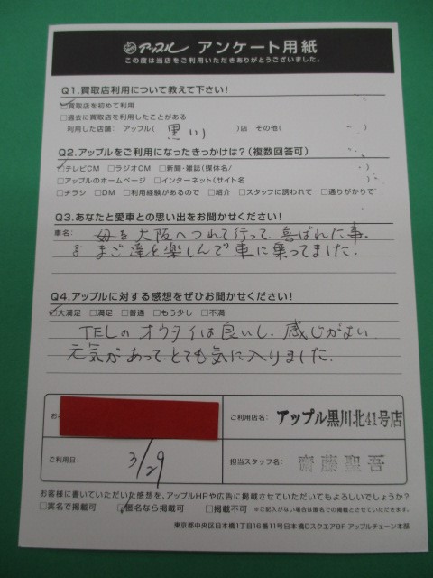 お車のご相談・ 査定だけでもOK! カンタン 入力 30秒 アップルがブランド買取始めました! お電話でも受付中! 受付時間10:00~19:00 ※毎週水曜定休日 052-508-9641 お車のご相談・ 査定だけでもOK! カンタン 入力 30秒 アップルがブランド買取始めました! お電話でも受付中! 受付時間10:00~19:00 ※毎週水曜定休日 052-508-9641 アップルがブランド買取始めました! お電話でも受付中! 受付時間10:00~19:00 ※毎週水曜定休日 052-508-9641 店舗情報 在庫車 スタッフ紹介 ブログ お客様の声 キャンペーン お得 無料査定 click お客様の声 ご記入日: 2019/03/29 F.S様 TELのオウタイは良いし、感じがよい。元気があって、とても気に入りました。 前へ 次へ お客様の声一覧を見る