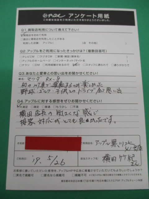 お車のご相談・ 査定だけでもOK! カンタン 入力 30秒 アップルがブランド買取始めました! お電話でも受付中! 受付時間10:00~19:00 ※毎週水曜定休日 052-508-9641 お車のご相談・ 査定だけでもOK! カンタン 入力 30秒 アップルがブランド買取始めました! お電話でも受付中! 受付時間10:00~19:00 ※毎週水曜定休日 052-508-9641 アップルがブランド買取始めました! お電話でも受付中! 受付時間10:00~19:00 ※毎週水曜定休日 052-508-9641 店舗情報 在庫車 スタッフ紹介 ブログ お客様の声 キャンペーン お得 無料査定 click お客様の声 ご記入日: 2019/05/26 K.H様 車名:マツダ RX-8 横田店長の気さくな感じ接客対応がとても良かったです。 前へ 次へ お客様の声一覧を見る
