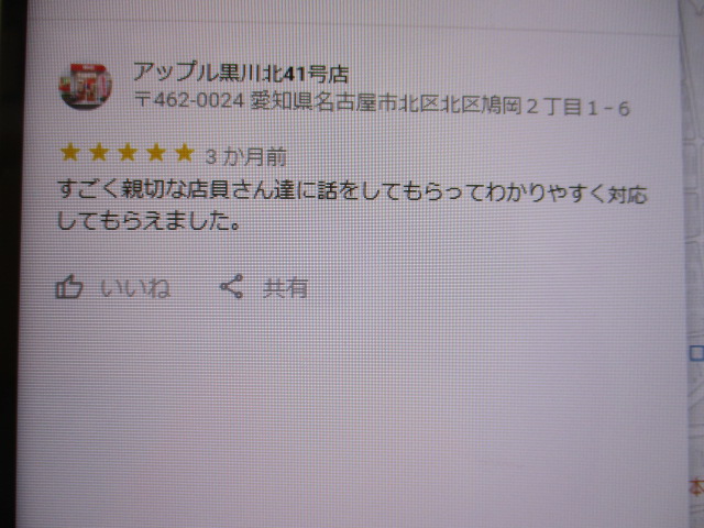 お車のご相談・ 査定だけでもOK! カンタン 入力 30秒 アップルがブランド買取始めました! お電話でも受付中! 受付時間10:00~19:00 ※毎週水曜定休日 052-508-9641 お車のご相談・ 査定だけでもOK! カンタン 入力 30秒 アップルがブランド買取始めました! お電話でも受付中! 受付時間10:00~19:00 ※毎週水曜定休日 052-508-9641 アップルがブランド買取始めました! お電話でも受付中! 受付時間10:00~19:00 ※毎週水曜定休日 052-508-9641 店舗情報 在庫車 スタッフ紹介 ブログ お客様の声 キャンペーン お得 無料査定 click お客様の声 ご記入日: 2019/06/08 匿名様 すごく親切な店員さん達に話をしてもらってわかりやすく対応してもらえました。 前へ 次へ お客様の声一覧を見る