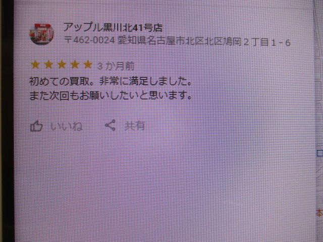 お車のご相談・ 査定だけでもOK! カンタン 入力 30秒 アップルがブランド買取始めました! お電話でも受付中! 受付時間10:00~19:00 ※毎週水曜定休日 052-508-9641 お車のご相談・ 査定だけでもOK! カンタン 入力 30秒 アップルがブランド買取始めました! お電話でも受付中! 受付時間10:00~19:00 ※毎週水曜定休日 052-508-9641 アップルがブランド買取始めました! お電話でも受付中! 受付時間10:00~19:00 ※毎週水曜定休日 052-508-9641 店舗情報 在庫車 スタッフ紹介 ブログ お客様の声 キャンペーン お得 無料査定 click お客様の声 ご記入日: 2019/06/20 匿名様 初めての買取。非常に満足しました。また次回もお願いしたいと思います。 前へ 次へ お客様の声一覧を見る