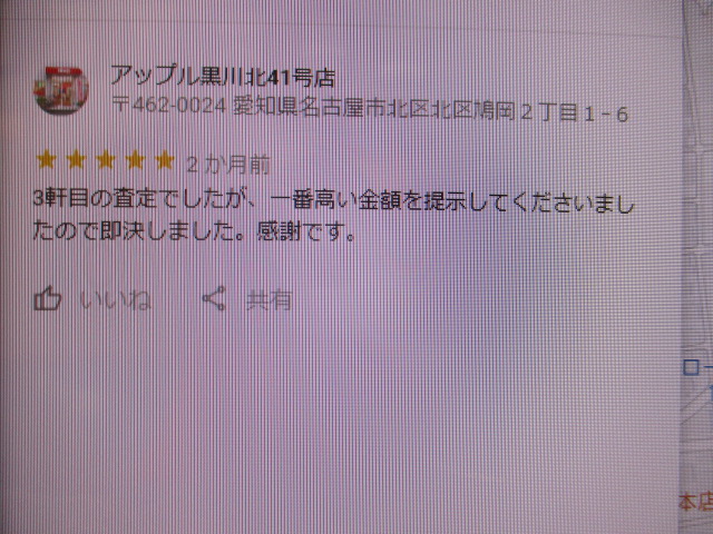 お車のご相談・ 査定だけでもOK! カンタン 入力 30秒 アップルがブランド買取始めました! お電話でも受付中! 受付時間10:00~19:00 ※毎週水曜定休日 052-508-9641 お車のご相談・ 査定だけでもOK! カンタン 入力 30秒 アップルがブランド買取始めました! お電話でも受付中! 受付時間10:00~19:00 ※毎週水曜定休日 052-508-9641 アップルがブランド買取始めました! お電話でも受付中! 受付時間10:00~19:00 ※毎週水曜定休日 052-508-9641 店舗情報 在庫車 スタッフ紹介 ブログ お客様の声 キャンペーン お得 無料査定 click お客様の声 ご記入日: 2019/07/20 匿名様 3軒目の査定でしたが、一番高い金額を提示してくださいましたので即決しました。感謝です。 前へ 次へ お客様の声一覧を見る