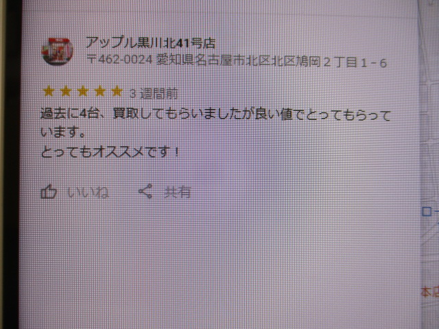 お車のご相談・ 査定だけでもOK! カンタン 入力 30秒 アップルがブランド買取始めました! お電話でも受付中! 受付時間10:00~19:00 ※毎週水曜定休日 052-508-9641 お車のご相談・ 査定だけでもOK! カンタン 入力 30秒 アップルがブランド買取始めました! お電話でも受付中! 受付時間10:00~19:00 ※毎週水曜定休日 052-508-9641 アップルがブランド買取始めました! お電話でも受付中! 受付時間10:00~19:00 ※毎週水曜定休日 052-508-9641 店舗情報 在庫車 スタッフ紹介 ブログ お客様の声 キャンペーン お得 無料査定 click お客様の声 ご記入日: 2019/09/02 匿名様 過去に4台、買取してもらいましたが良い値でとってもらっています。とってもオススメです! 前へ 次へ お客様の声一覧を見る