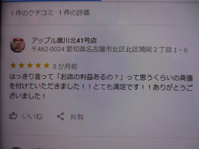 お車のご相談・ 査定だけでもOK! カンタン 入力 30秒 アップルがブランド買取始めました! お電話でも受付中! 受付時間10:00~19:00 ※毎週水曜定休日 052-508-9641 お車のご相談・ 査定だけでもOK! カンタン 入力 30秒 アップルがブランド買取始めました! お電話でも受付中! 受付時間10:00~19:00 ※毎週水曜定休日 052-508-9641 アップルがブランド買取始めました! お電話でも受付中! 受付時間10:00~19:00 ※毎週水曜定休日 052-508-9641 店舗情報 在庫車 スタッフ紹介 ブログ お客様の声 キャンペーン お得 無料査定 click お客様の声 ご記入日: 2019/10/19 匿名様 はっきり言って「お店の利益あるの?」って思うくらいの高値を付けていただきました!!とても満足です!!ありがとうございました! 前へ 次へ お客様の声一覧を見る