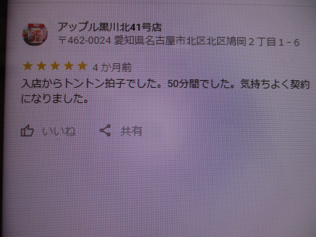お車のご相談・ 査定だけでもOK! カンタン 入力 30秒 アップルがブランド買取始めました! お電話でも受付中! 受付時間10:00~19:00 ※毎週水曜定休日 052-508-9641 お車のご相談・ 査定だけでもOK! カンタン 入力 30秒 アップルがブランド買取始めました! お電話でも受付中! 受付時間10:00~19:00 ※毎週水曜定休日 052-508-9641 アップルがブランド買取始めました! お電話でも受付中! 受付時間10:00~19:00 ※毎週水曜定休日 052-508-9641 店舗情報 在庫車 スタッフ紹介 ブログ お客様の声 キャンペーン お得 無料査定 click お客様の声 ご記入日: 2019/11/19 匿名様 入店からトントン拍子でした。50分間でした。気持ちよく契約になりました。 前へ 次へ お客様の声一覧を見る