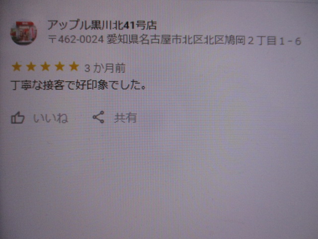 お車のご相談・ 査定だけでもOK! カンタン 入力 30秒 アップルがブランド買取始めました! お電話でも受付中! 受付時間10:00~19:00 ※毎週水曜定休日 052-508-9641 お車のご相談・ 査定だけでもOK! カンタン 入力 30秒 アップルがブランド買取始めました! お電話でも受付中! 受付時間10:00~19:00 ※毎週水曜定休日 052-508-9641 アップルがブランド買取始めました! お電話でも受付中! 受付時間10:00~19:00 ※毎週水曜定休日 052-508-9641 店舗情報 在庫車 スタッフ紹介 ブログ お客様の声 キャンペーン お得 無料査定 click お客様の声 ご記入日: 2019/12/07 匿名様 丁寧な接客で好印象でした。 前へ 次へ お客様の声一覧を見る