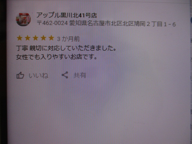 お車のご相談・ 査定だけでもOK! カンタン 入力 30秒 アップルがブランド買取始めました! お電話でも受付中! 受付時間10:00~19:00 ※毎週水曜定休日 052-508-9641 お車のご相談・ 査定だけでもOK! カンタン 入力 30秒 アップルがブランド買取始めました! お電話でも受付中! 受付時間10:00~19:00 ※毎週水曜定休日 052-508-9641 アップルがブランド買取始めました! お電話でも受付中! 受付時間10:00~19:00 ※毎週水曜定休日 052-508-9641 店舗情報 在庫車 スタッフ紹介 ブログ お客様の声 キャンペーン お得 無料査定 click お客様の声 ご記入日: 2019/12/26 匿名様 丁寧 親切に対応していただきました。女性でも入りやすいお店です。 前へ 次へ お客様の声一覧を見る