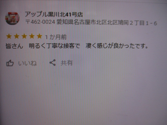 お車のご相談・ 査定だけでもOK! カンタン 入力 30秒 アップルがブランド買取始めました! お電話でも受付中! 受付時間10:00~19:00 ※毎週水曜定休日 052-508-9641 お車のご相談・ 査定だけでもOK! カンタン 入力 30秒 アップルがブランド買取始めました! お電話でも受付中! 受付時間10:00~19:00 ※毎週水曜定休日 052-508-9641 アップルがブランド買取始めました! お電話でも受付中! 受付時間10:00~19:00 ※毎週水曜定休日 052-508-9641 店舗情報 在庫車 スタッフ紹介 ブログ お客様の声 キャンペーン お得 無料査定 click お客様の声 ご記入日: 2020/02/03 匿名様 皆さん 明るく丁寧な接客で 凄く感じが良かったです。 前へ 次へ お客様の声一覧を見る