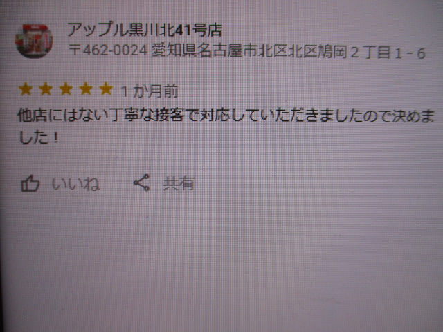 お車のご相談・ 査定だけでもOK! カンタン 入力 30秒 アップルがブランド買取始めました! お電話でも受付中! 受付時間10:00~19:00 ※毎週水曜定休日 052-508-9641 お車のご相談・ 査定だけでもOK! カンタン 入力 30秒 アップルがブランド買取始めました! お電話でも受付中! 受付時間10:00~19:00 ※毎週水曜定休日 052-508-9641 アップルがブランド買取始めました! お電話でも受付中! 受付時間10:00~19:00 ※毎週水曜定休日 052-508-9641 店舗情報 在庫車 スタッフ紹介 ブログ お客様の声 キャンペーン お得 無料査定 click お客様の声 ご記入日: 2020/02/13 匿名様 他店にはない丁寧な接客で対応していただきましたので決めました! 前へ 次へ お客様の声一覧を見る