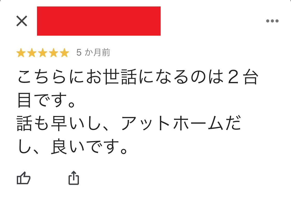 お車のご相談・ 査定だけでもOK! カンタン 入力 30秒 アップルがブランド買取始めました! お電話でも受付中! 受付時間10:00~19:00 ※毎週水曜定休日 052-508-9641 お車のご相談・ 査定だけでもOK! カンタン 入力 30秒 アップルがブランド買取始めました! お電話でも受付中! 受付時間10:00~19:00 ※毎週水曜定休日 052-508-9641 アップルがブランド買取始めました! お電話でも受付中! 受付時間10:00~19:00 ※毎週水曜定休日 052-508-9641 店舗情報 在庫車 スタッフ紹介 ブログ お客様の声 キャンペーン お得 無料査定 click お客様の声 ご記入日: 2020/05/21 匿名様 こちらにお世話になるのは2台目です。話も早いし、アットホームだし、良いです。 前へ 次へ お客様の声一覧を見る