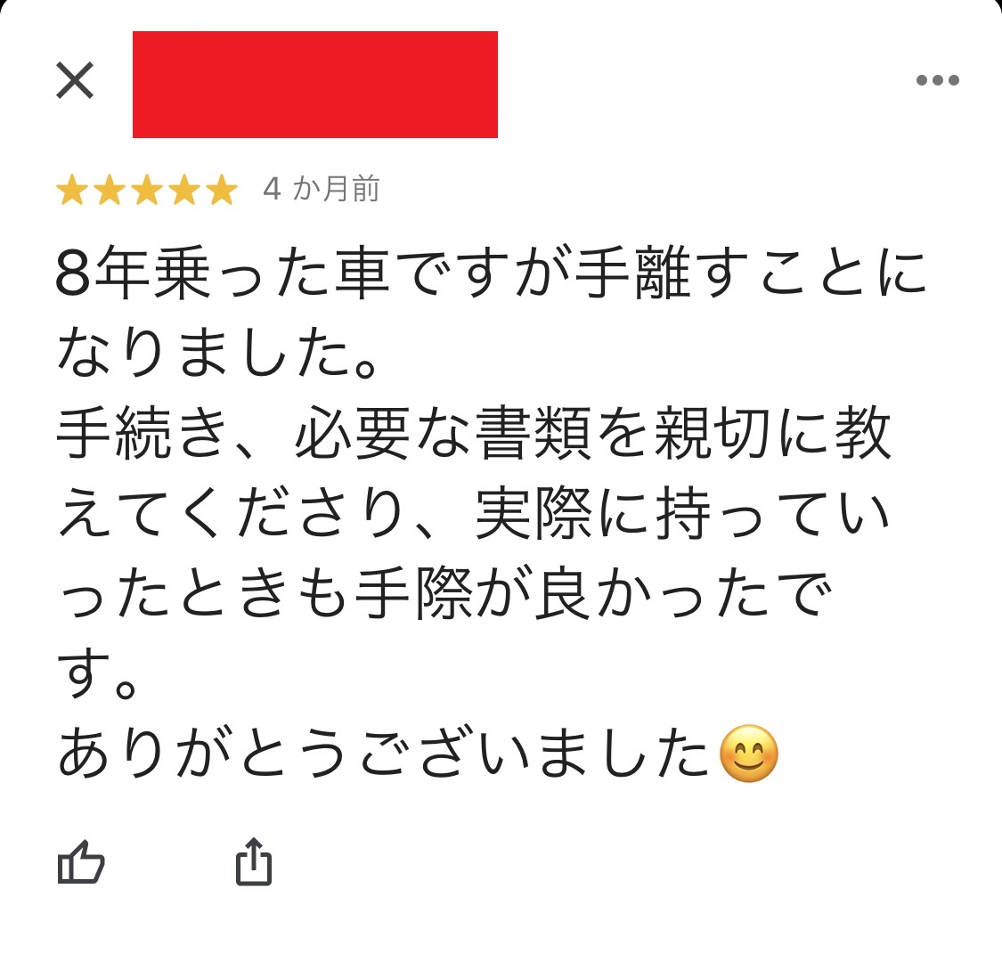 お車のご相談・ 査定だけでもOK! カンタン 入力 30秒 アップルがブランド買取始めました! お電話でも受付中! 受付時間10:00~19:00 ※毎週水曜定休日 052-508-9641 お車のご相談・ 査定だけでもOK! カンタン 入力 30秒 アップルがブランド買取始めました! お電話でも受付中! 受付時間10:00~19:00 ※毎週水曜定休日 052-508-9641 アップルがブランド買取始めました! お電話でも受付中! 受付時間10:00~19:00 ※毎週水曜定休日 052-508-9641 店舗情報 在庫車 スタッフ紹介 ブログ お客様の声 キャンペーン お得 無料査定 click お客様の声 ご記入日: 2020/05/24 匿名希望トッポBJ様 車名:三菱 トッポBJ 8年乗った車ですが手離すことになりました。手続き、必要な書類を親切に教えてくださり、実際に持っていったときも手際が良かったです。ありがとうございました 前へ 次へ お客様の声一覧を見る