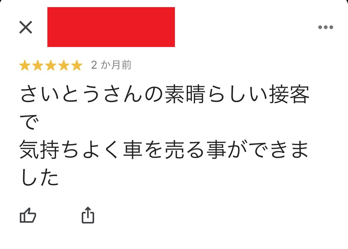 お車のご相談・ 査定だけでもOK! カンタン 入力 30秒 アップルがブランド買取始めました! お電話でも受付中! 受付時間10:00~19:00 ※毎週水曜定休日 052-508-9641 お車のご相談・ 査定だけでもOK! カンタン 入力 30秒 アップルがブランド買取始めました! お電話でも受付中! 受付時間10:00~19:00 ※毎週水曜定休日 052-508-9641 アップルがブランド買取始めました! お電話でも受付中! 受付時間10:00~19:00 ※毎週水曜定休日 052-508-9641 店舗情報 在庫車 スタッフ紹介 ブログ お客様の声 キャンペーン お得 無料査定 click お客様の声 ご記入日: 2020/08/01 匿名希望フィットHV様 車名:ホンダ フィットハイブリッド(~H25年9月) さいとうさんの素晴らしい接客で気持ちよく車を売る事ができました 前へ 次へ お客様の声一覧を見る
