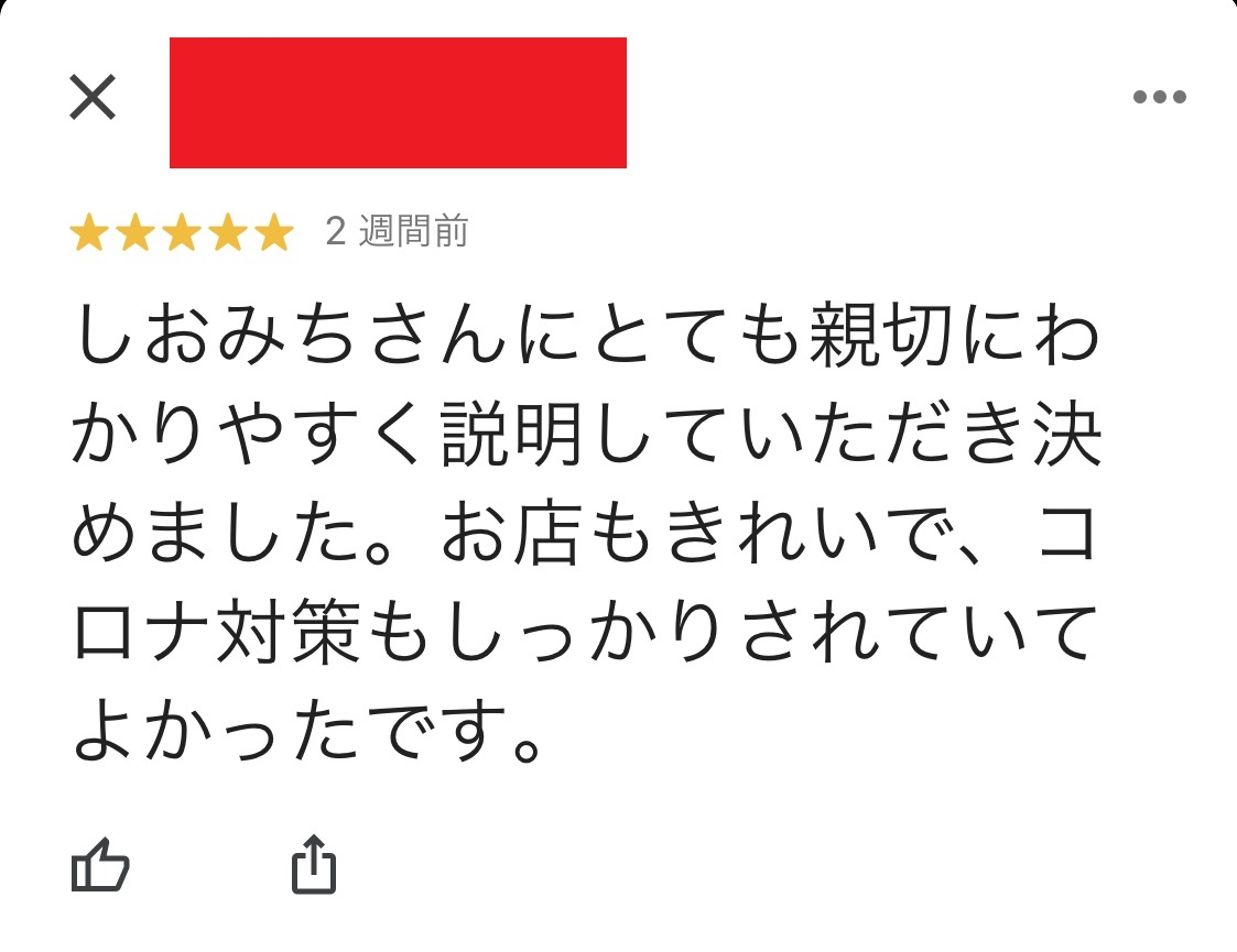 お車のご相談・ 査定だけでもOK! カンタン 入力 30秒 アップルがブランド買取始めました! お電話でも受付中! 受付時間10:00~19:00 ※毎週水曜定休日 052-508-9641 お車のご相談・ 査定だけでもOK! カンタン 入力 30秒 アップルがブランド買取始めました! お電話でも受付中! 受付時間10:00~19:00 ※毎週水曜定休日 052-508-9641 アップルがブランド買取始めました! お電話でも受付中! 受付時間10:00~19:00 ※毎週水曜定休日 052-508-9641 店舗情報 在庫車 スタッフ紹介 ブログ お客様の声 キャンペーン お得 無料査定 click お客様の声 ご記入日: 2020/09/20 匿名希望ヴィッツ様 車名:トヨタ ヴィッツ しおみちさんにとても親切にわかりやすく説明していただき決めました。お店もきれいで、コロナ対策もしっかりされていてよかったです。 前へ 次へ お客様の声一覧を見る