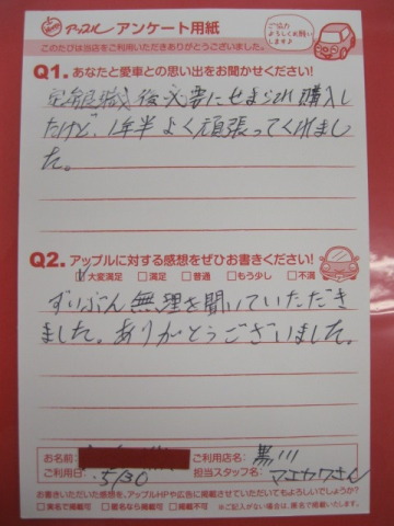 お車のご相談・ 査定だけでもOK! カンタン 入力 30秒 アップルがブランド買取始めました! お電話でも受付中! 受付時間10:00~19:00 ※毎週水曜定休日 052-508-9641 お車のご相談・ 査定だけでもOK! カンタン 入力 30秒 アップルがブランド買取始めました! お電話でも受付中! 受付時間10:00~19:00 ※毎週水曜定休日 052-508-9641 アップルがブランド買取始めました! お電話でも受付中! 受付時間10:00~19:00 ※毎週水曜定休日 052-508-9641 店舗情報 在庫車 スタッフ紹介 ブログ お客様の声 キャンペーン お得 無料査定 click お客様の声 ご記入日: 2013/05/30 T・I様 ずいぶん無理を聞いていただきました。ありがとうございました。 前へ 次へ お客様の声一覧を見る