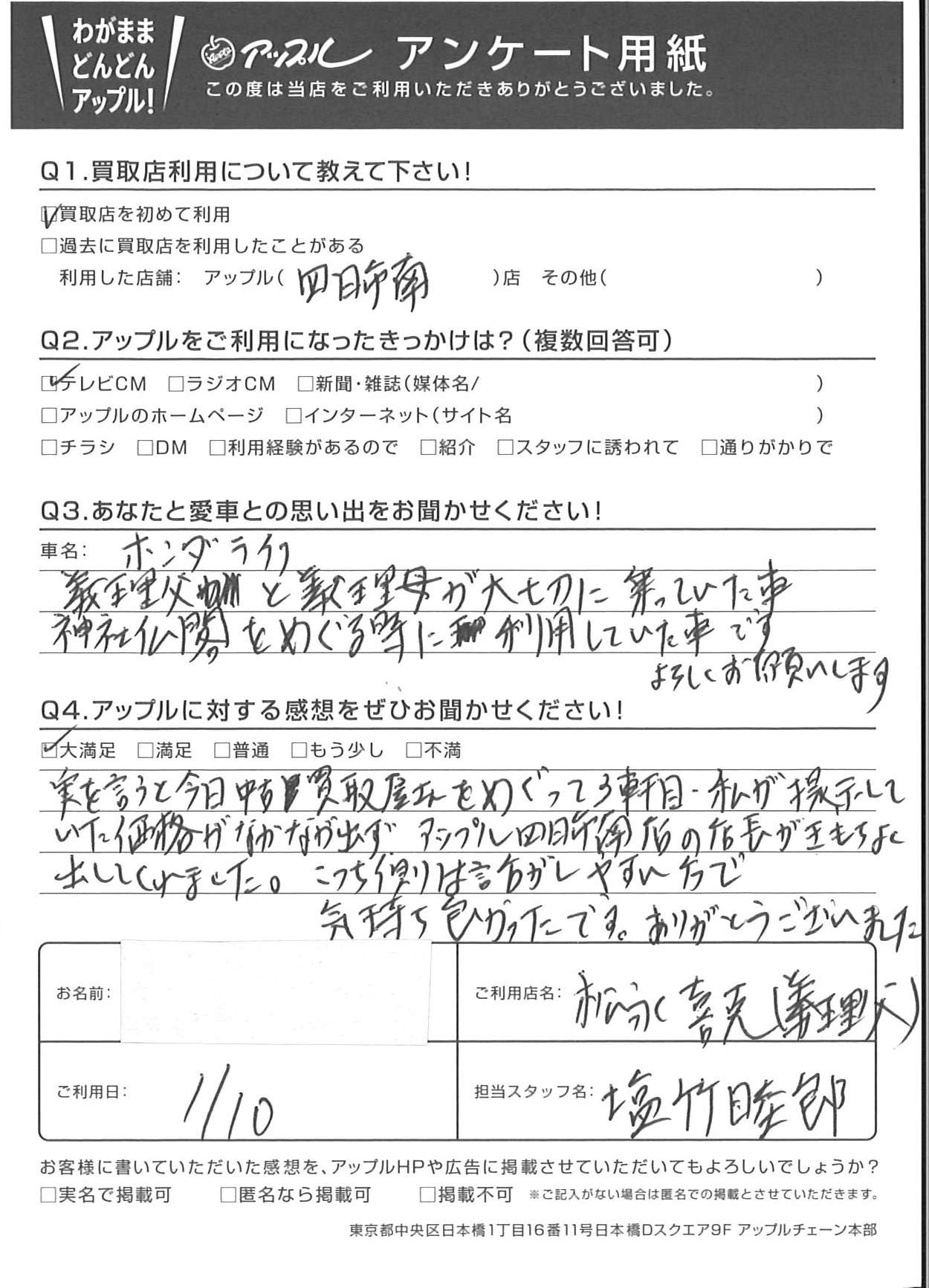 実を言うと今日中古買取屋さんをめぐって3件目、私が提示していた価格がなかなか出ず、アップル四日市南の店長がきもちよく出してくれました。