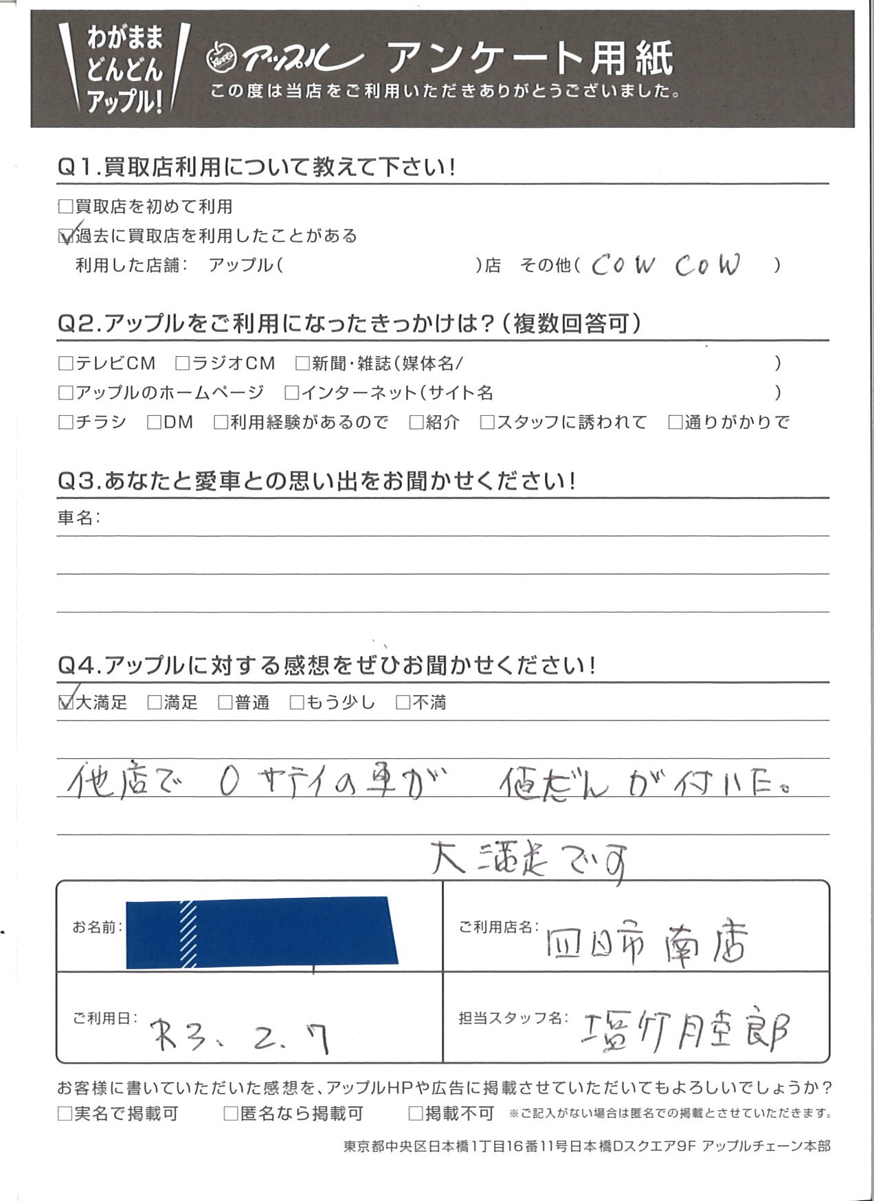 お車のご相談・ 査定だけでもOK! カンタン 入力 30秒 アップルがブランド買取始めました! お電話でも受付中! 受付時間10:00 ~ 18:30 0120-665-977 お車のご相談・ 査定だけでもOK! カンタン 入力 30秒 アップルがブランド買取始めました! お電話でも受付中! 受付時間10:00 ~ 18:30 0120-665-977 アップルがブランド買取始めました! お電話でも受付中! 受付時間10:00 ~ 18:30 0120-665-977 店舗情報 在庫車 スタッフ紹介 ブログ お客様の声 キャンペーン お得 無料査定 click お客様の声 ご記入日: 2021/02/07 匿名様 車名:メルセデス・ベンツ Bクラス 他店で0サテイの車が値だんが付いた。大満足です 前へ 次へ お客様の声一覧を見る
