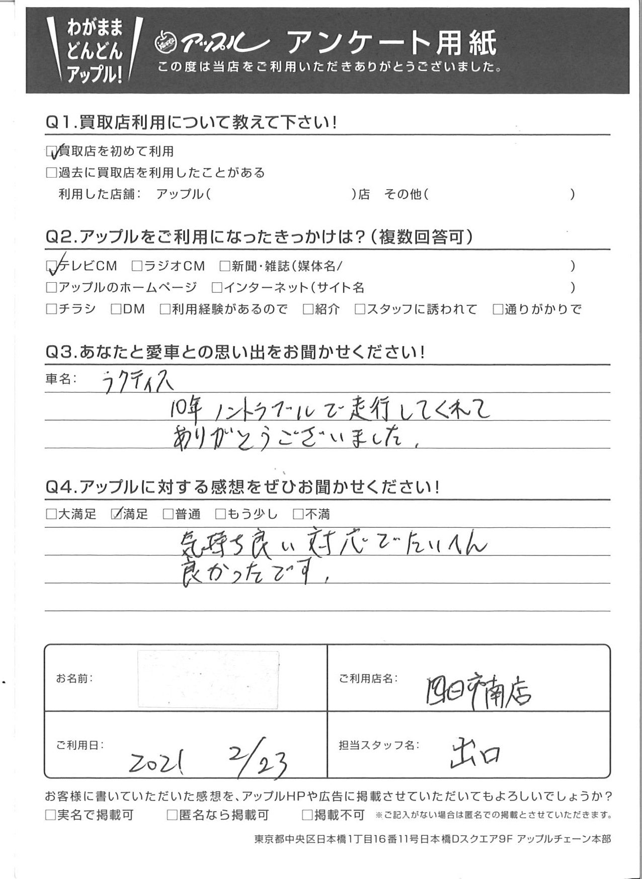 お車のご相談・ 査定だけでもOK! カンタン 入力 30秒 アップルがブランド買取始めました! お電話でも受付中! 受付時間10:00 ~ 18:30 0120-665-977 お車のご相談・ 査定だけでもOK! カンタン 入力 30秒 アップルがブランド買取始めました! お電話でも受付中! 受付時間10:00 ~ 18:30 0120-665-977 アップルがブランド買取始めました! お電話でも受付中! 受付時間10:00 ~ 18:30 0120-665-977 店舗情報 在庫車 スタッフ紹介 ブログ お客様の声 キャンペーン お得 無料査定 click お客様の声 ご記入日: 2021/02/23 匿名様 車名:トヨタ ラクティス 10年ノントラブルで走行してくれてありがとうございました。気持ち良い対応でたいへん良かったです。 前へ 次へ お客様の声一覧を見る