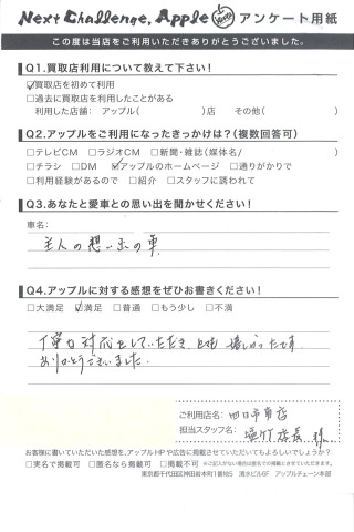 お車のご相談・ 査定だけでもOK! カンタン 入力 30秒 アップルがブランド買取始めました! お電話でも受付中! 受付時間10:00 ~ 18:30 0120-665-977 お車のご相談・ 査定だけでもOK! カンタン 入力 30秒 アップルがブランド買取始めました! お電話でも受付中! 受付時間10:00 ~ 18:30 0120-665-977 アップルがブランド買取始めました! お電話でも受付中! 受付時間10:00 ~ 18:30 0120-665-977 店舗情報 在庫車 スタッフ紹介 ブログ お客様の声 キャンペーン お得 無料査定 click お客様の声 ご記入日: 2015/07/01 F・M様 丁寧な対応をしていただき、とても嬉しかったです。ありがとうございました。 前へ 次へ お客様の声一覧を見る
