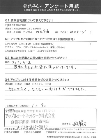 お車のご相談・ 査定だけでもOK! カンタン 入力 30秒 アップルがブランド買取始めました! お電話でも受付中! 受付時間10:00 ~ 18:30 0120-665-977 お車のご相談・ 査定だけでもOK! カンタン 入力 30秒 アップルがブランド買取始めました! お電話でも受付中! 受付時間10:00 ~ 18:30 0120-665-977 アップルがブランド買取始めました! お電話でも受付中! 受付時間10:00 ~ 18:30 0120-665-977 店舗情報 在庫車 スタッフ紹介 ブログ お客様の声 キャンペーン お得 無料査定 click お客様の声 ご記入日: 2016/01/09 M・K様 運転するのが毎日楽しかったです。話しやすく、とてもいい取り引きができました。 前へ 次へ お客様の声一覧を見る