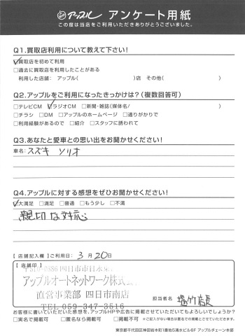 お車のご相談・ 査定だけでもOK! カンタン 入力 30秒 アップルがブランド買取始めました! お電話でも受付中! 受付時間10:00 ~ 18:30 0120-665-977 お車のご相談・ 査定だけでもOK! カンタン 入力 30秒 アップルがブランド買取始めました! お電話でも受付中! 受付時間10:00 ~ 18:30 0120-665-977 アップルがブランド買取始めました! お電話でも受付中! 受付時間10:00 ~ 18:30 0120-665-977 店舗情報 在庫車 スタッフ紹介 ブログ お客様の声 キャンペーン お得 無料査定 click お客様の声 ご記入日: 2016/03/20 K・S様 スズキ ソリオ親切な対応 前へ 次へ お客様の声一覧を見る