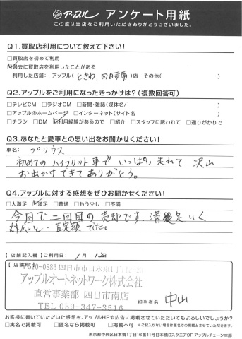 お車のご相談・ 査定だけでもOK! カンタン 入力 30秒 アップルがブランド買取始めました! お電話でも受付中! 受付時間10:00 ~ 18:30 0120-665-977 お車のご相談・ 査定だけでもOK! カンタン 入力 30秒 アップルがブランド買取始めました! お電話でも受付中! 受付時間10:00 ~ 18:30 0120-665-977 アップルがブランド買取始めました! お電話でも受付中! 受付時間10:00 ~ 18:30 0120-665-977 店舗情報 在庫車 スタッフ紹介 ブログ お客様の声 キャンペーン お得 無料査定 click お客様の声 ご記入日: 2017/01/12 Y・N様 プリウス初めてのハイブリッド車でいっぱい走れて沢山お出かけできてありがとう。今回で二回目の売却です。満足いく対応と、査定額でした。 前へ 次へ お客様の声一覧を見る