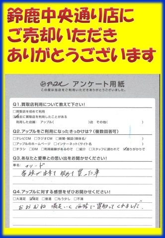お車のご相談・ 査定だけでもOK! カンタン 入力 30秒 アップルがブランド買取始めました! お電話でも受付中! 受付時間 10:00 ~ 18:30 0120-866-446 お車のご相談・ 査定だけでもOK! カンタン 入力 30秒 アップルがブランド買取始めました! お電話でも受付中! 受付時間 10:00 ~ 18:30 0120-866-446 アップルがブランド買取始めました! お電話でも受付中! 受付時間 10:00 ~ 18:30 0120-866-446 店舗情報 在庫車 スタッフ紹介 ブログ お客様の声 キャンペーン お得 無料査定 click お客様の声 ご記入日: 2016/10/30 H.K様 当店をご利用頂きまして、誠にありがとうございます。またのご来店をスタッフ一同、心よりお待ちしております。 前へ 次へ お客様の声一覧を見る