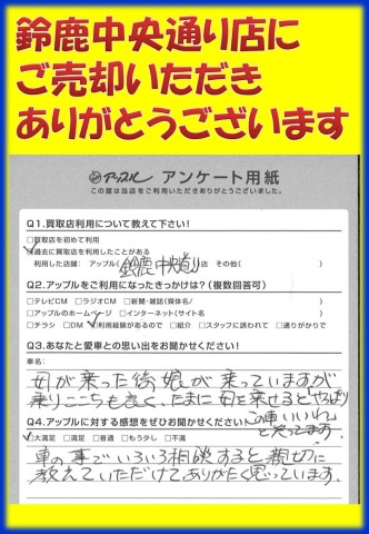 お車のご相談・ 査定だけでもOK! カンタン 入力 30秒 アップルがブランド買取始めました! お電話でも受付中! 受付時間 10:00 ~ 18:30 0120-866-446 お車のご相談・ 査定だけでもOK! カンタン 入力 30秒 アップルがブランド買取始めました! お電話でも受付中! 受付時間 10:00 ~ 18:30 0120-866-446 アップルがブランド買取始めました! お電話でも受付中! 受付時間 10:00 ~ 18:30 0120-866-446 店舗情報 在庫車 スタッフ紹介 ブログ お客様の声 キャンペーン お得 無料査定 click お客様の声 ご記入日: 2016/11/06 S.Y様 当店をご利用頂きまして、誠にありがとうございます。またのご来店をスタッフ一同、心よりお待ちしております。 前へ 次へ お客様の声一覧を見る