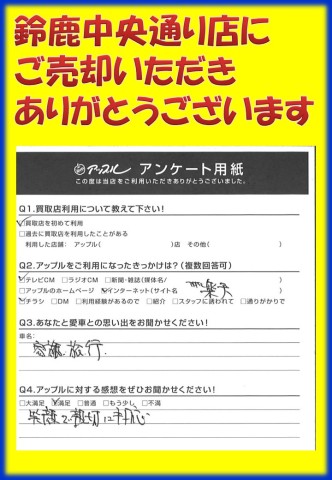 お車のご相談・ 査定だけでもOK! カンタン 入力 30秒 アップルがブランド買取始めました! お電話でも受付中! 受付時間 10:00 ~ 18:30 0120-866-446 お車のご相談・ 査定だけでもOK! カンタン 入力 30秒 アップルがブランド買取始めました! お電話でも受付中! 受付時間 10:00 ~ 18:30 0120-866-446 アップルがブランド買取始めました! お電話でも受付中! 受付時間 10:00 ~ 18:30 0120-866-446 店舗情報 在庫車 スタッフ紹介 ブログ お客様の声 キャンペーン お得 無料査定 click お客様の声 ご記入日: 2017/03/25 Y.K様 当店をご利用頂きまして、誠にありがとうございます。またのご来店をスタッフ一同、心よりお待ちしております。 前へ 次へ お客様の声一覧を見る