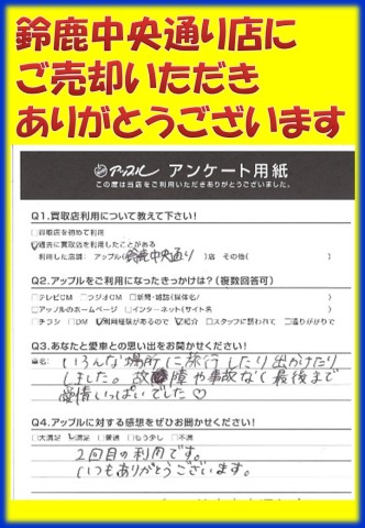 お車のご相談・ 査定だけでもOK! カンタン 入力 30秒 アップルがブランド買取始めました! お電話でも受付中! 受付時間 10:00 ~ 18:30 0120-866-446 お車のご相談・ 査定だけでもOK! カンタン 入力 30秒 アップルがブランド買取始めました! お電話でも受付中! 受付時間 10:00 ~ 18:30 0120-866-446 アップルがブランド買取始めました! お電話でも受付中! 受付時間 10:00 ~ 18:30 0120-866-446 店舗情報 在庫車 スタッフ紹介 ブログ お客様の声 キャンペーン お得 無料査定 click お客様の声 ご記入日: 2017/04/29 N様 当店をご利用頂きまして、誠にありがとうございます。またのご来店をスタッフ一同、心よりお待ちしております。 前へ 次へ お客様の声一覧を見る