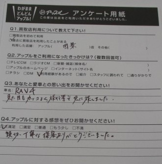 福島県郡山市 K .A様 車名:トヨタ RAV4(R04年10月~RAV4 PHV含む)