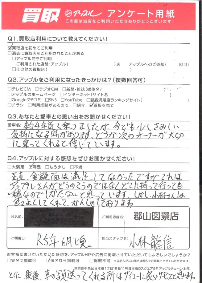 金額面ではK様のご期待に沿う事が出来ませんでしたが、限界まで頑張らせていただきました!