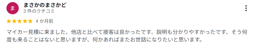 他店と比べて接客は良かったです、説明も分かりやすかったです、