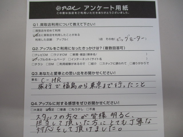 この度は、弊社をご利用いただき誠にありがとうございました。