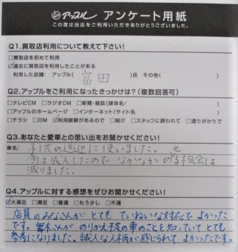 お車のご相談・ 査定だけでもOK! カンタン 入力 30秒 アップルがブランド買取始めました! お電話でも受付中! 受付時間10:00 ~ 12:00 13:00 ~ 18:00 024-983-3226 お車のご相談・ 査定だけでもOK! カンタン 入力 30秒 アップルがブランド買取始めました! お電話でも受付中! 受付時間10:00 ~ 12:00 13:00 ~ 18:00 024-983-3226 アップルがブランド買取始めました! お電話でも受付中! 受付時間10:00 ~ 12:00 13:00 ~ 18:00 024-983-3226 店舗情報 在庫車 スタッフ紹介 ブログ お客様の声 キャンペーン 無料査定 click お客様の声 ご記入日: 2021/01/04 H・H様 車名:トヨタ ラクティス お客様満足度★★★★★お子さんの送迎で使用されていた思い出の車ということでした。これからのお車にも沢山の思い出を作ってください!ご利用いただいてありがとうございました。 前へ 次へ お客様の声一覧を見る