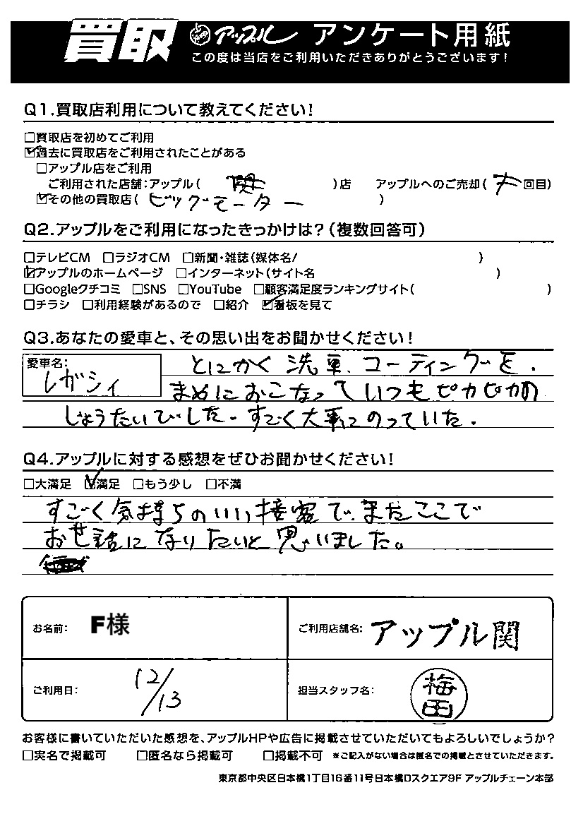 F様 車名:スバル レガシィツーリングワゴン