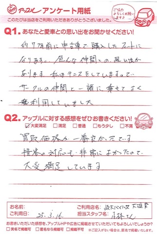 接客の対応も非常によかったので、大変満足しています。