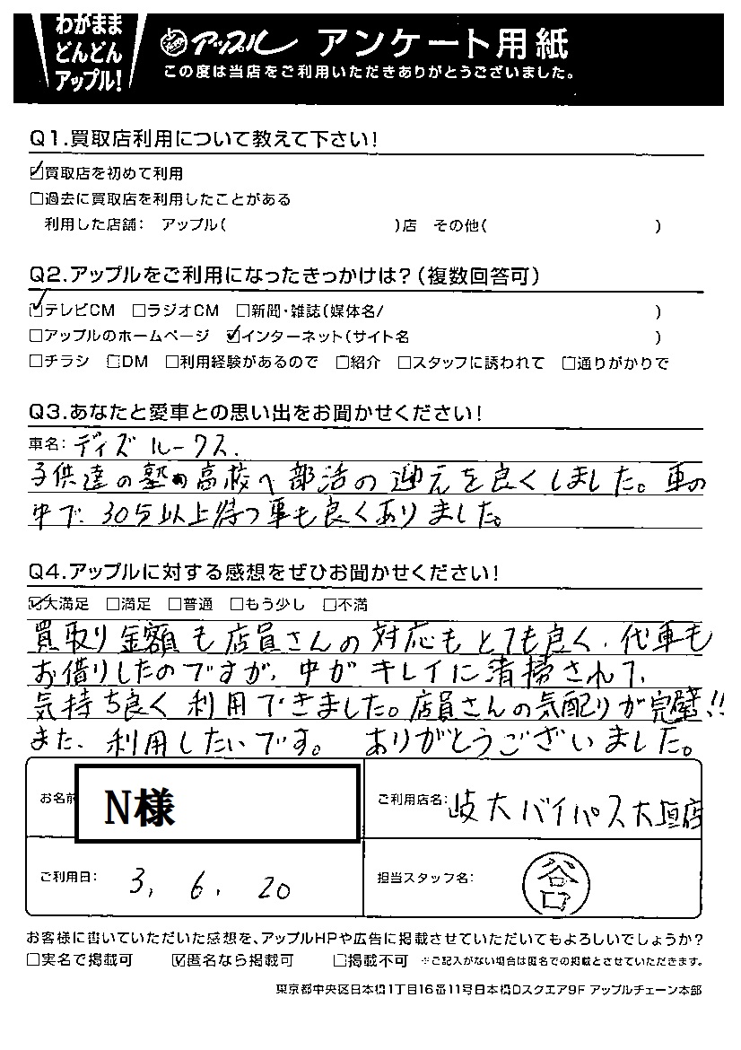 買取り金額も店員さんの対応もとても良く、代車もお借りしたのですが