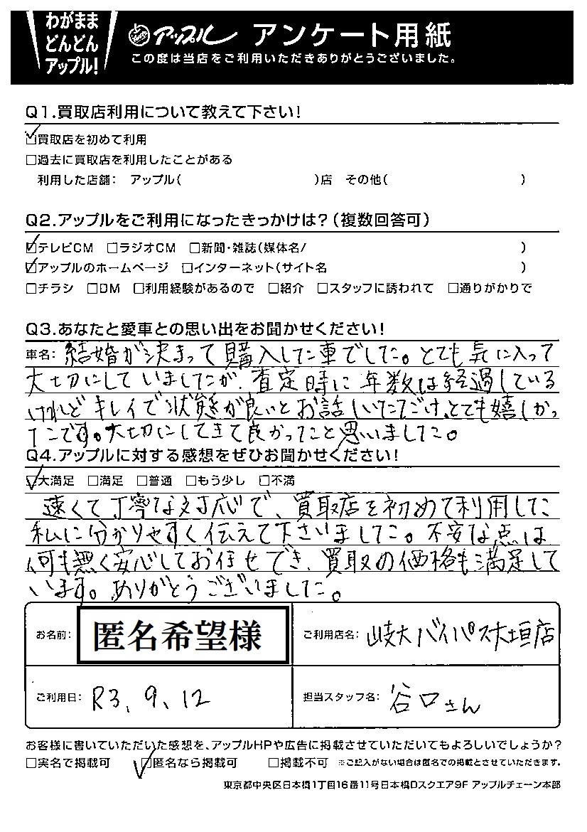 けれどキレイで状態が良いとお話しいただけ、とても嬉しかった