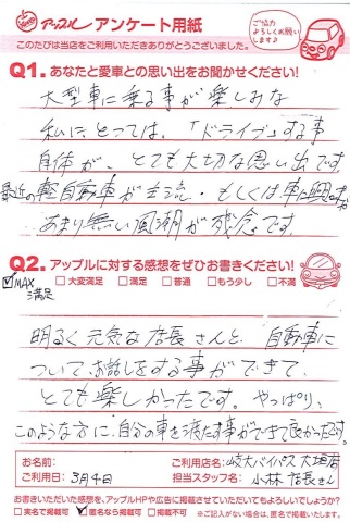 やっぱりこのような方に自分の車を渡す事ができて良かったです。