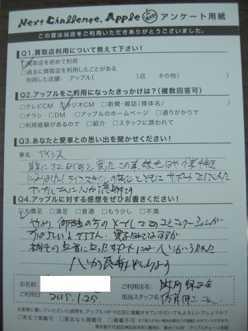 Q.愛車との思い出は? A.東京にきて初めて買ったこの車、娘もはや小学4年生になりました。ライフスタイルの変化と共にサポートしてくれたアップルさんに感謝です。
