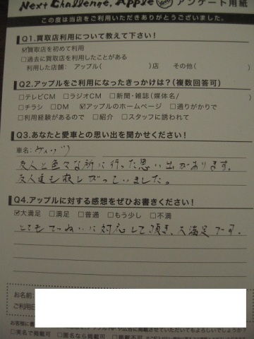 お車のご相談・ 査定だけでもOK! カンタン 入力 30秒 アップルがブランド買取始めました! お電話でも受付中! 受付時間10:00 ~ 19:00 03-5903-8567 お車のご相談・ 査定だけでもOK! カンタン 入力 30秒 アップルがブランド買取始めました! お電話でも受付中! 受付時間10:00 ~ 19:00 03-5903-8567 アップルがブランド買取始めました! お電話でも受付中! 受付時間10:00 ~ 19:00 03-5903-8567 店舗情報 在庫車 スタッフ紹介 ブログ お客様の声 キャンペーン お得 無料査定 click お客様の声 ご記入日: 2015/02/14 Y・A様 お車:ヴィッツQ.愛車との思い出は? A.友人と色々な所に行った思い出があります。友人たちも寂しがっていました。Q.アップルの感想は? A.とても丁寧に対応して頂き、大満足です。 前へ 次へ お客様の声一覧を見る