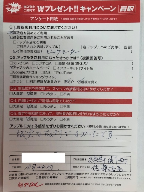お車のご相談・ 査定だけでもOK! カンタン 入力 30秒 アップルがブランド買取始めました! お電話でも受付中! 受付時間10:00 ~ 19:00 03-5903-8567 お車のご相談・ 査定だけでもOK! カンタン 入力 30秒 アップルがブランド買取始めました! お電話でも受付中! 受付時間10:00 ~ 19:00 03-5903-8567 アップルがブランド買取始めました! お電話でも受付中! 受付時間10:00 ~ 19:00 03-5903-8567 店舗情報 在庫車 スタッフ紹介 ブログ お客様の声 キャンペーン お得 無料査定 click お客様の声 ご記入日: 2023/10/22 東京都練馬区 M・J様 車名:ボルボ V40 お車:ボルボV40Q.アップルに対する感想は? A.満足:誠実な対応でよかったです。 前へ 次へ お客様の声一覧を見る