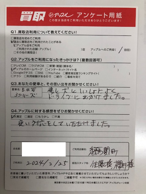 練馬区 I・H様 車名:BMW 3シリーズセダン