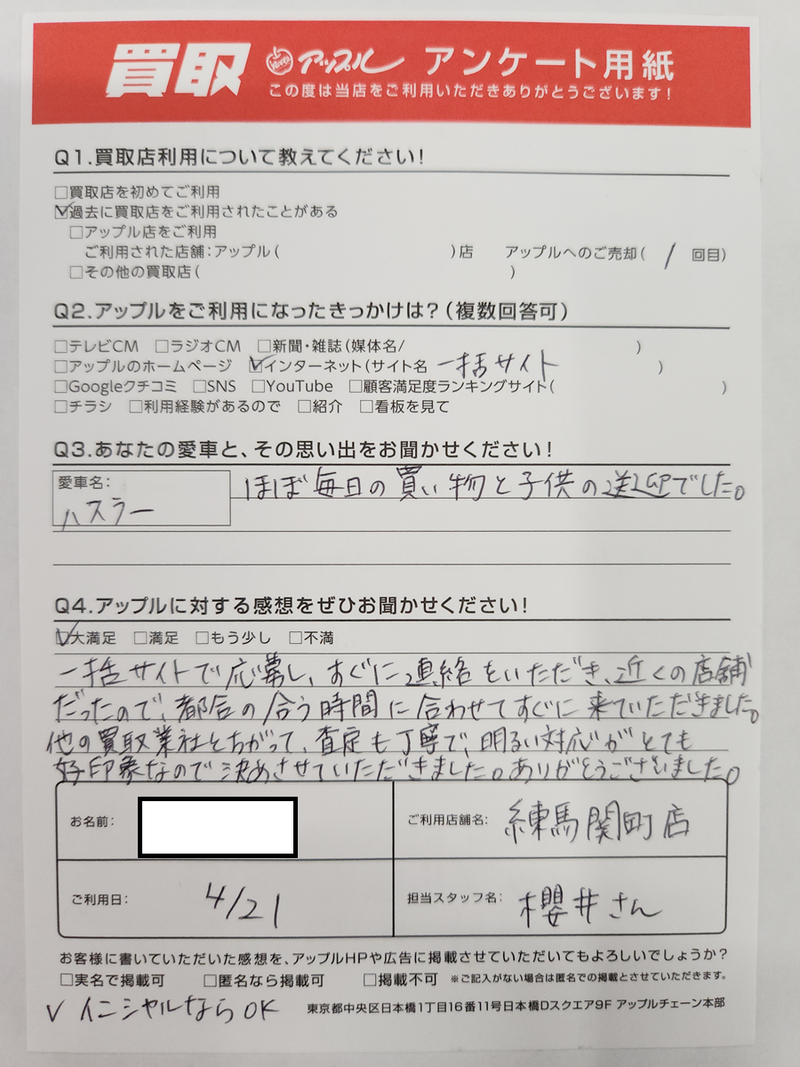 練馬区 K・A様 車名:スズキ ハスラー
